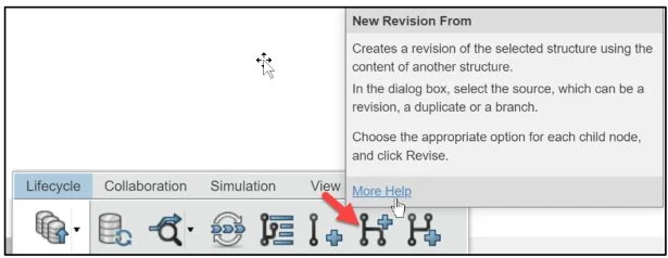 New Revision From: Create a revision of the selected structure using the content of another structure. In the dialog box, select the source, which can be a revision, a duplicate or a branch. Choose the appropriate option for each child node, and click Revise.