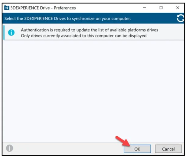 The 3DEXPERIENCE Drive – Preferences dialog box is displayed. Read the message.