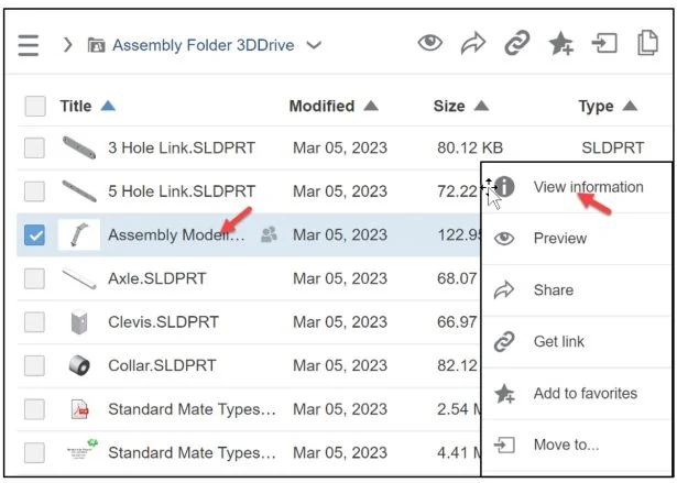 Click the Assembly Folder 3DDrive. View the files and documents in the folder.