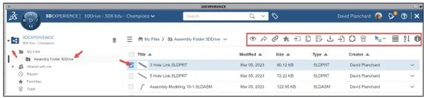 In this lesson, install 3DEXPERIENCE Drive for Windows directly from your SOLIDWORKS desktop. The following items are covered in 3DDrive: upload, download, view properties, share, roles, embed comments, links, 3DSwym, members, revoke access and delete and restore files.