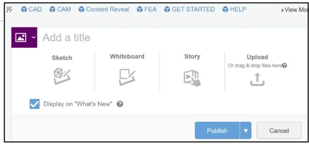 Click 3D / Photo / Video to create and post with a 3DSketch, Whiteboard, Story, or Upload.