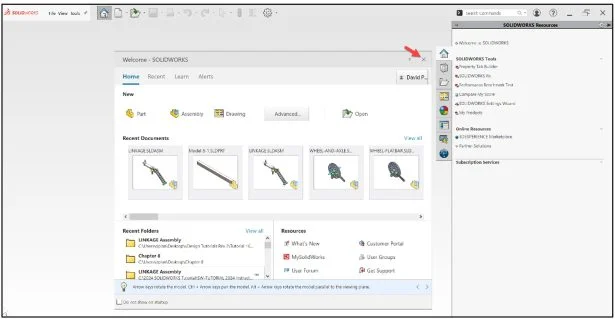 The Welcome – SOLIDWORKS dialog box is displayed.