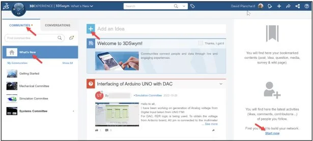 The 3DSwym Community homepage is displayed. Your 3DSwym Community homepage will look different.