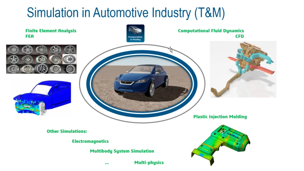 Transportation and Mobility or the Automotive Industry affect our everyday life in many different ways. From directly impacting us with the safety and comfort of our everyday commute to the long-term effect on the sustainability and the future of our planet, the effort to develop better products is a never-ending goal. In this context, simulation and virtual prototyping are extremely beneficial, from ideation to design, engineering and beyond.