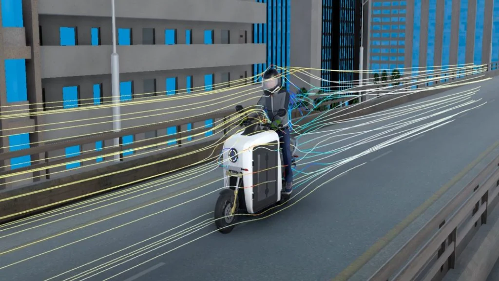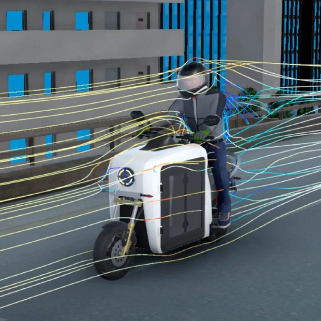 The F9 was developed to address the health and safety concerns posed by traditional cargo transport on two-wheel vehicles. The product was launched into development in 2018 and benefited immensely from the SOLIDWORKS® for Startups Program that included access to both SOLIDWORKS and 3DEXPERIENCE® Works solutions. Alok Das, co-founder of QARGOS, highlights, “The addition of the 3DEXPERIENCE Works solutions—particularly the MODSIM workflows—magnified our capabilities and elevated our development efforts.”