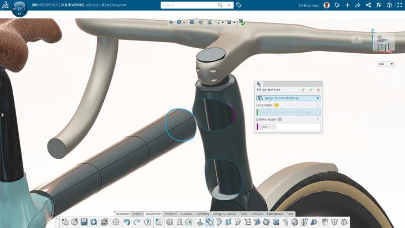 When you have two subdivision bodies in one model, you can select two open faces and easily merge them together using the Merge Surfaces command. Spend more time perfecting your shape and then put it altogether later. This allows you to focus on the important design areas upfront, giving you more control of your design process.