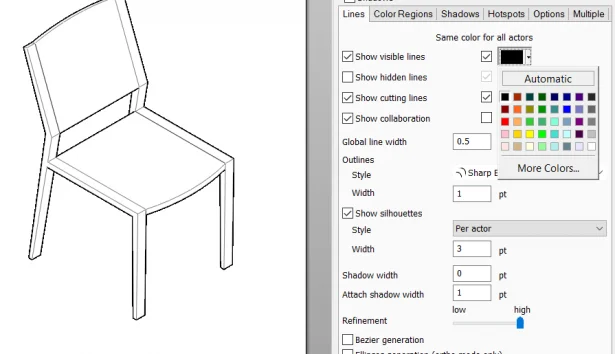 To choose specific (line) colors in SOLIDWORKS Composer: