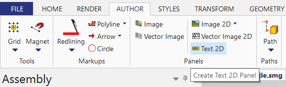 - Click on the Text 2D icon in the Author