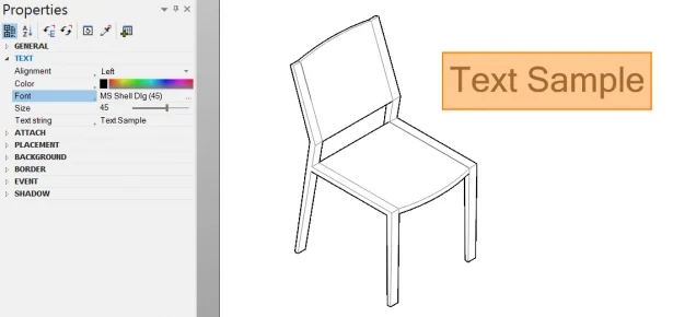 - Edit the font, background color, shadow, etc. from the Properties