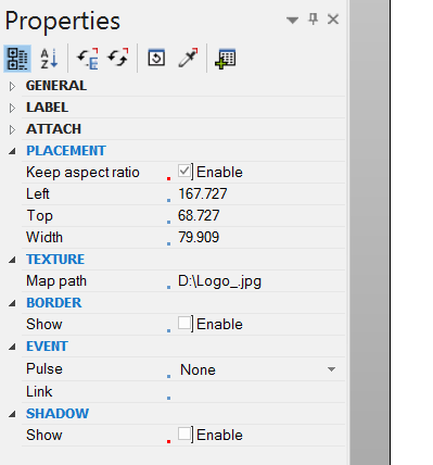 - In the Placement field of the Properties Pane, make sure that Keep Aspect Ratio is checked to avoid distortions of your image.