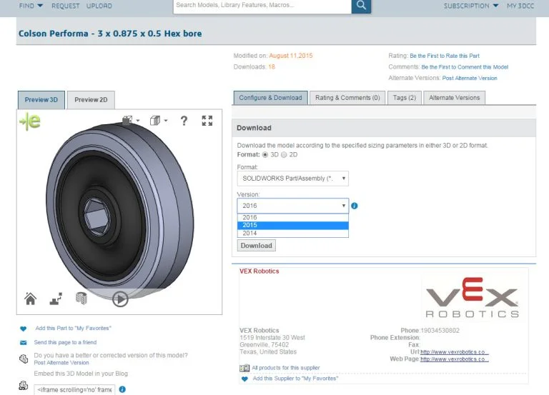 VEX ROBOTICS Certified Component Supplier on 3D ContentCentral