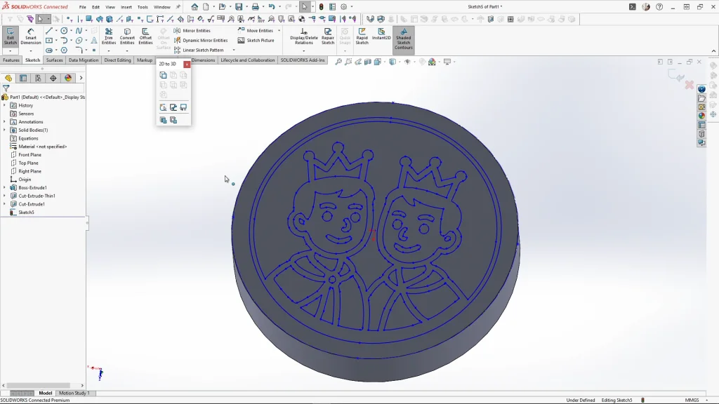 For this mini SOLIDWORKS tutorial, I decided to make some toy coins for my son’s wooden cash register. The original toy came with just four coins, and I realized they were a bit too small for my youngest son—under 32mm in diameter, which is considered a choking hazard. Plus, four coins really aren’t enough when you’re trying to teach older kids about money. That’s when the idea hit me, why not 3D print safe, fun, and personalized coins? I designed a set of coins slightly larger than 32mm and added custom DXF sketches featuring my boys as “young kings” on the back. It was a fun little project, and it gave me a chance to play with SOLIDWORKS while creating something practical.
