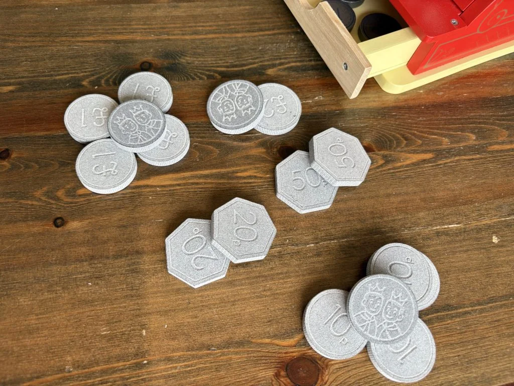 The final coins were printed in MJF PA12 Nylon by 3D Print UK, polished grey for a shiny, almost metallic finish. They turned out beautifully safe, fun, and perfect for teaching my older son about money while keeping the youngest safe.