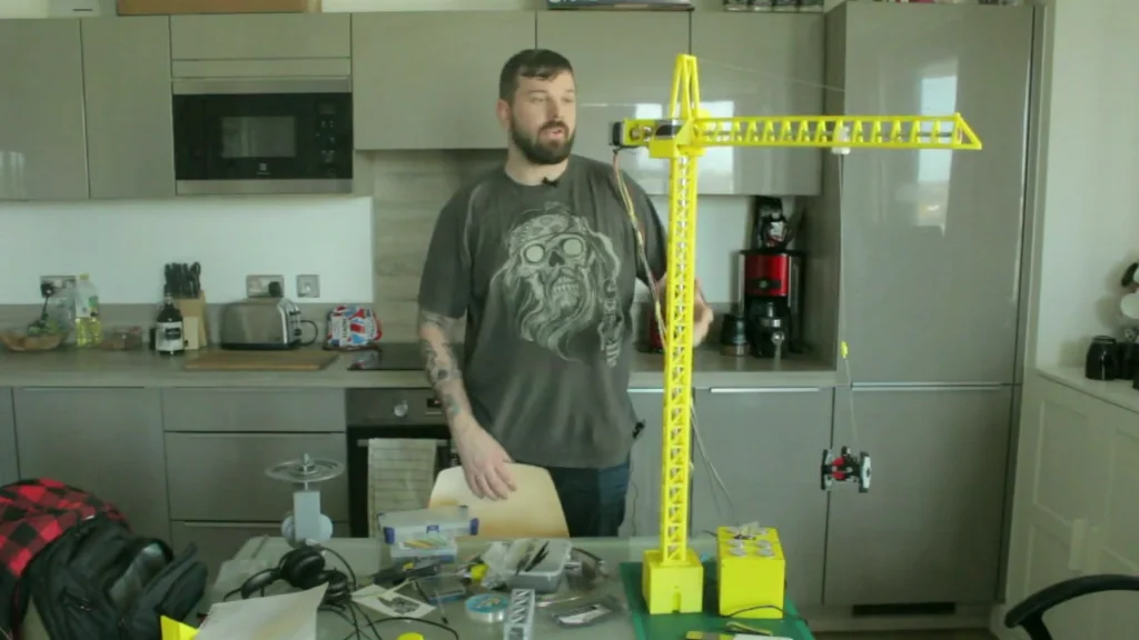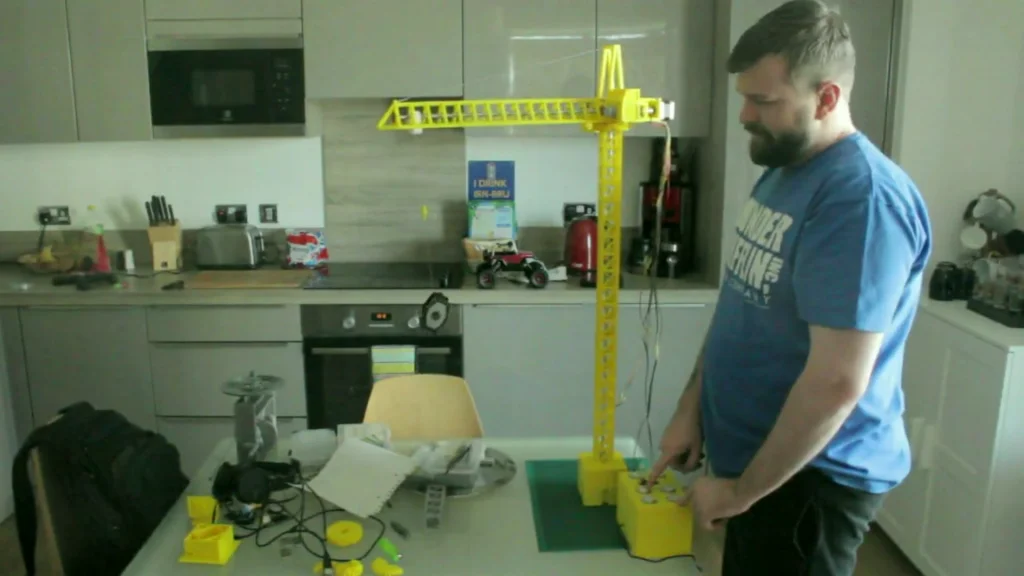 We added the assets of all the motors in so we could design around them. We built it from the base up, working out how we were going to assemble as we build the model. The whole crane was printed and assembled using nuts and bolts only. No glue has been used to hold the crane together.
