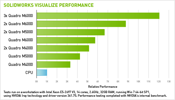 GPU-accelerated rendering tools, such as SOLIDWORKS Visualize, benefit from the power of discrete graphics and SOLIDWORKS users around the world already count on HP Z Desktop and Mobile Workstations powered by NVIDIA® Quadro® professional GPUs for their demanding design work. However, with the increasing adoption of 4K displays, such as the Ultra-High Definition HP Z27s, the need for more graphics power becomes evident. Because 4K displays deliver four times the resolution of a standard HD monitor, computer systems need to lift four times the graphical information to the screen.