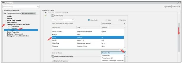 Note: To modify a default unit, drag the slider downward to locate the magnitude, select the magnitude, select the new unit from the drop-down menu as illustrated.