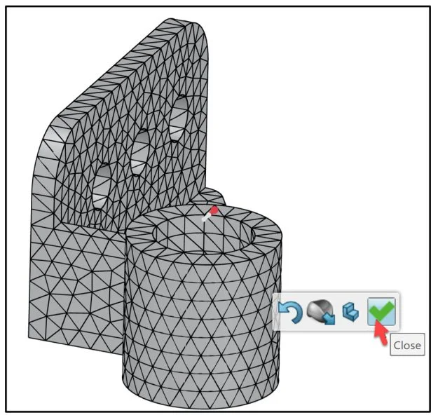 Apply a Global mesh. Use the default element type (Tetrahedron second-order elements). Mesh refinement is very important in regions of high stress concentrations such as regions of contact or sharp corners. Typically a smaller element size yields more accurate results, but increases the run time.