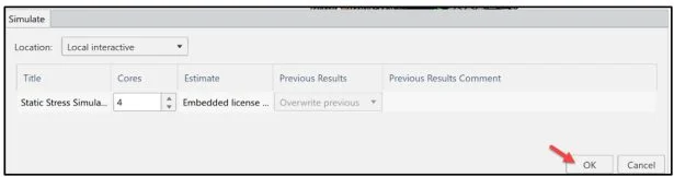 For a new user, It is recommended to run the Simulation using Local interactive. Local interactive is set by default using an embedded license. The Simulation is executed on your computer and the user interface is locked while the Simulation is in process.