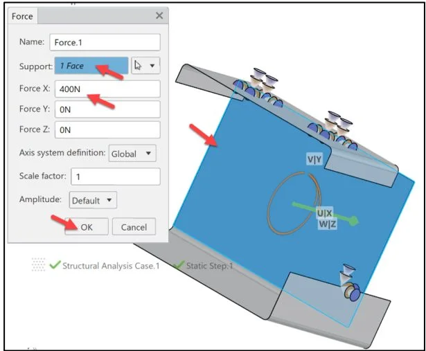 Enter 400N in the Force X box.