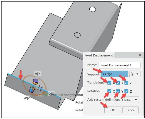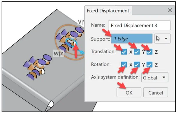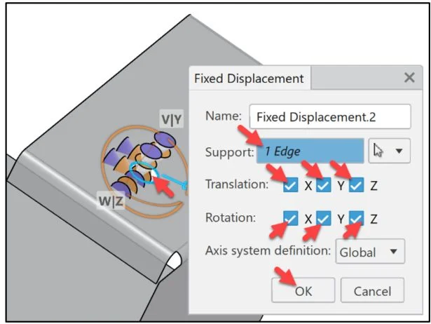 Click OK from the Fixed Displacement dialog box.