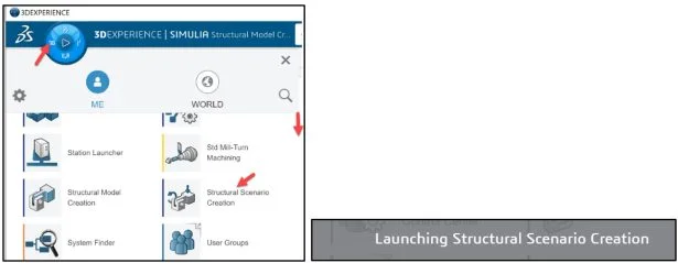 Click the center of the Compass. Launch the Structural Model Creation App. Think of this App as the SOLIDWORKS Simulation Add-in inside of SOLIDWORKS. Most of the 3DEXPERIENCE Apps run in your web browser. 3DEXPERIENCE Simulation Apps perform a small installation on your windows machine. Both types of Apps are linked to your PLM data on the platform.