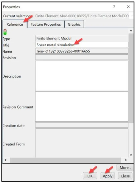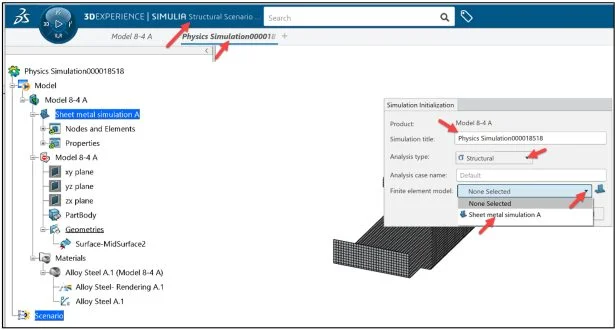 Select the created FEM (Sheet metal simulation A) from the Finite element model drop-down menu.