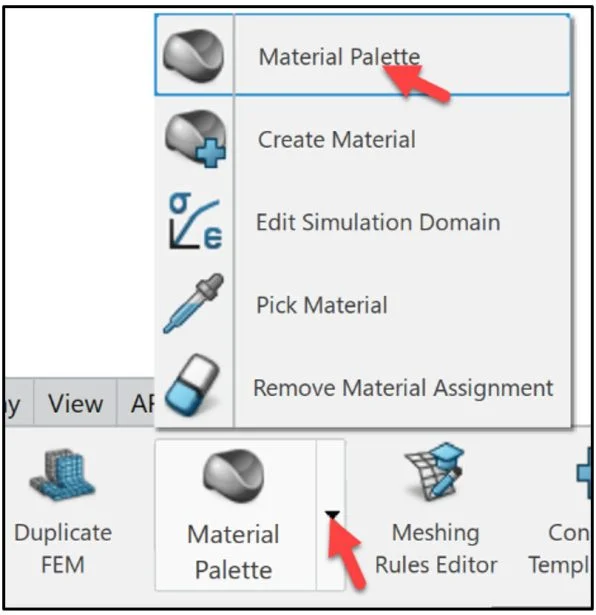 Click the Simulation tab. The material definition in a FEA simulation specifies all of the relevant material properties and the proper material behavior (such as Density, Young’s Modulus, Thermal conductivity, etc.).