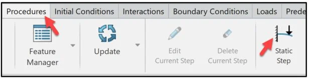 Create a Static step. A Static step performs a stress analysis of a stable problem in which inertia effects are neglected. During a Static step, a time period is assigned to the analysis. This is required for cross-references to the amplitude options, which can be used to determine the variation of loads and other externally prescribed parameters during a step.