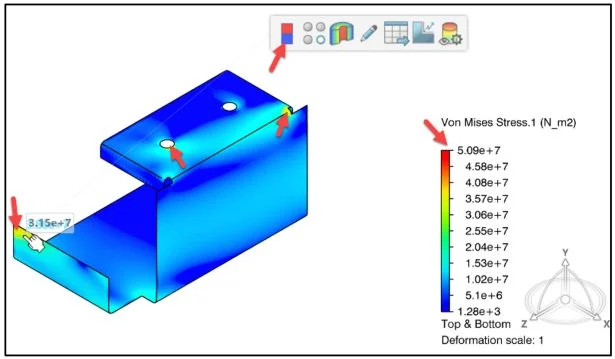 Rotate the part to view the highest stress areas.