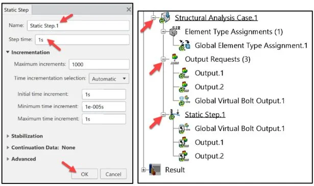 The Static Step dialog box is displayed. The default Name is Static Step.1