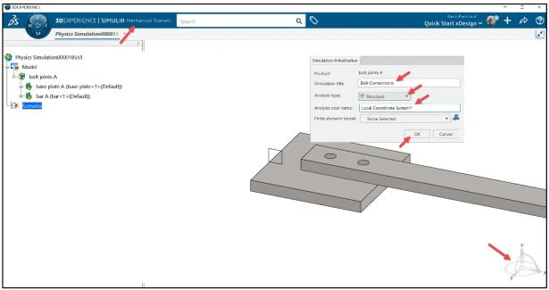 Click the center of the Compass. Launch the Mechanical Scenario Creation App. Think of this App as the SOLIDWORKS Simulation Add-in inside of SOLIDWORKS. Most of the 3DEXPERIENCE Apps run in your web browser. 3DEXPERIENCE Simulation Apps perform a small installation on your windows machine. Both types of Apps are linked to your PLM data on the platform.