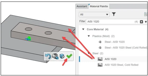 Click the top face of the base plate. 1 Face is displayed in the Main box.