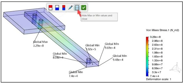 View the results. The Von Mises Stress contour plot is displayed by default.