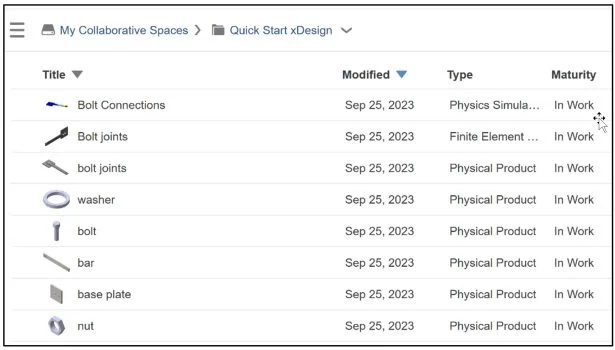 The below items from the Simulation study are saved in the Collaborative space on the 3DEXPERIENCE platform.