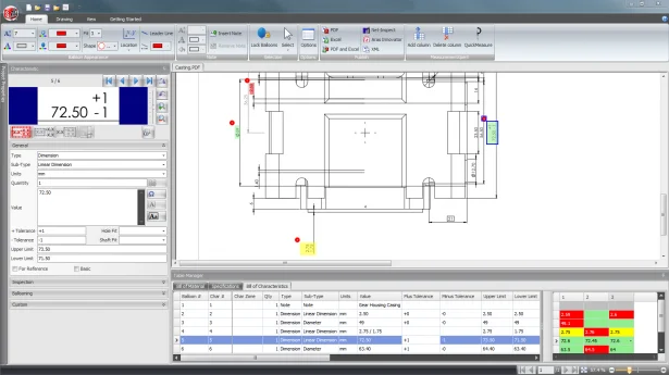 - Highlight dimensions in green, red or yellow to instantly see which dimensions are In Tolerance, Out of Tolerance or Marginally within Tolerance – based on the values entered.