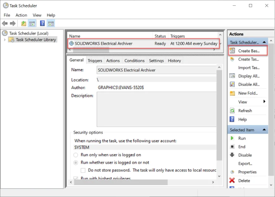 Since the inception of SOLIDWORKS Electrical, the Environmental Archive function has allowed users and administrators of SOLIDWORKS Electrical to back up their vital data for restoration. As of SOLIDWORKS Electrical 2021, your team can automatically use Windows Task Scheduler to set and run the archive in the background without interruption. (See #1 feature in this blog). In this guide, we’ll go over the options and steps for setting up automatic archiving on your Electrical Server.