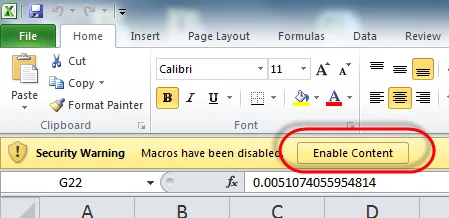 - Open the excel file. If you get a security warning message, simply click on “Enable Content”.