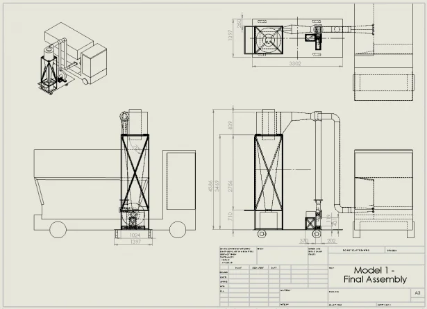 Factors such as total airflow, static pressure, material handling, cyclone dimensions and other physical characteristics were taken into design alternatives.