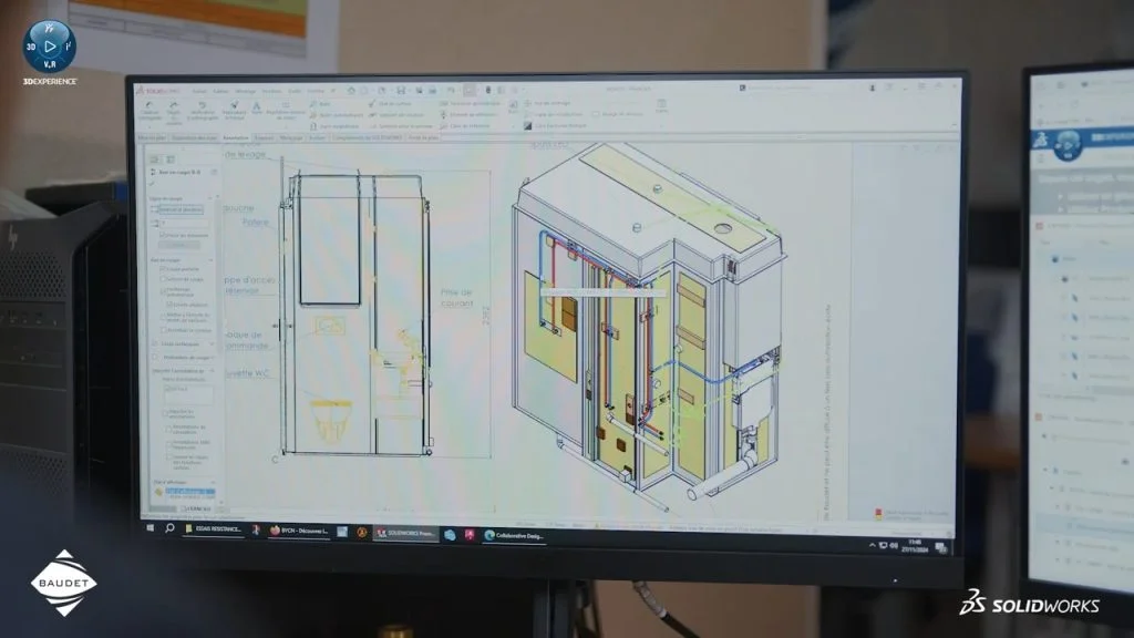 SOLIDWORKS plays an equally critical role inside BAUDET. “SOLIDWORKS software allows us to be very proactive in terms of design and development and sharing information about our bathrooms with our various stakeholders,” notes project manager Emmanuel Philippe. The team also uses SOLIDWORKS Simulation to test structural resistance, which helps to accelerate prototyping and shorten production cycles. “So, we can be more responsive during testing, prototyping, and production runs,” he adds.