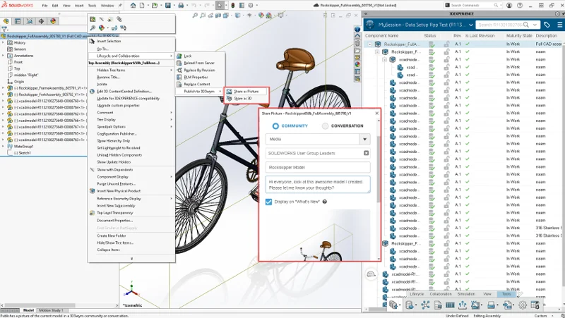 I’m sure by now you are taking advantage of 3DSwym. But did you know that you can also share your designs as 3D models and not just as a screenshot? Yes, easily share 3D models on 3DSwym internal or external communities right from Collaborative Designer for SOLIDWORKS. 3DSwym communities enable you to connect and engage with your team, other users, and members of the SOLIDWORKS team.