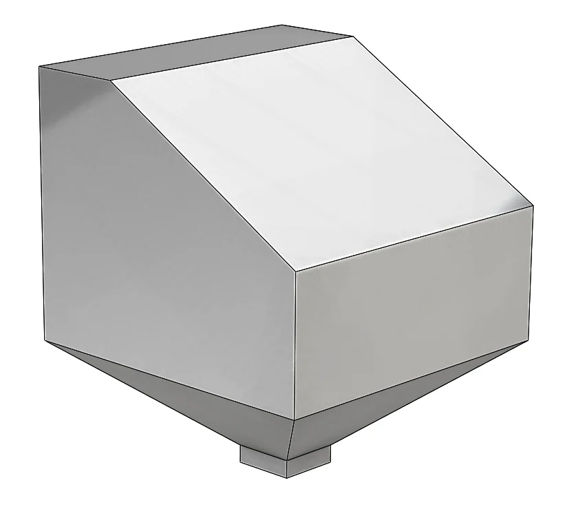 Start with modelling the basic shape of the final assembly in a new part. Do this by using standard SOLIDWORKS features (Boss-Extrude, Lofted Boss, etc.). The advantage is that you can focus on the main shape of the product and you don’t need to think about any sheet metal parameters. You could end up with a part as in the image below.