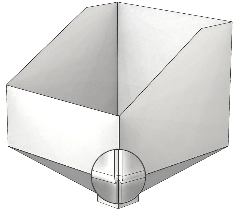 As you can see in the image, the two bodies are perfectly connected. This is because we create the sheet metal bodies from one main body. A big advantage is when the main body dimensions change, that all the sheet metal bodies will change accordingly. So, you can change your design with minimum effort.