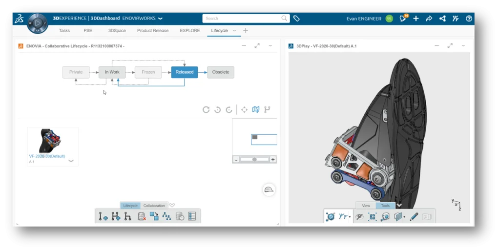 The 3DEXPERIENCE® platform provides the technology infrastructure to manage product design data and documents on the cloud connected with SOLIDWORKS®: a single source of truth not just for data but for all the product deliverables.