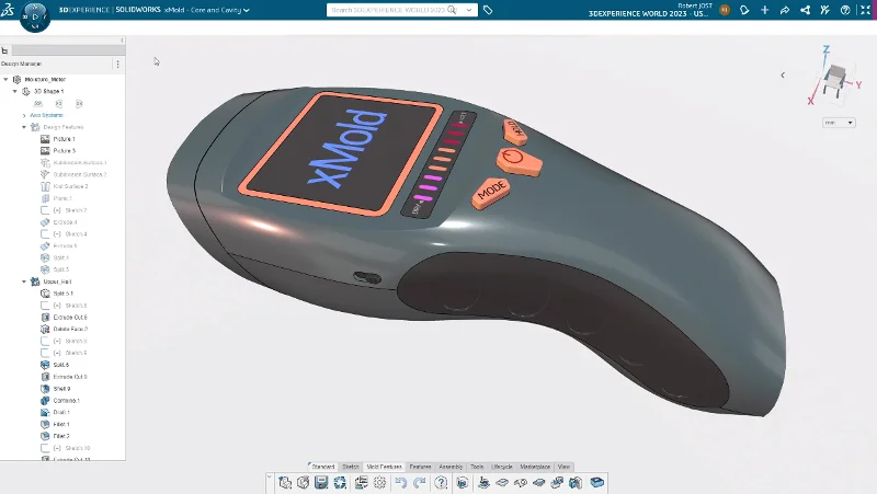 You’re going to see a lot of things that are familiar to SOLIDWORKS Desktop. Take the Feature Manager Tree, for example. We call it the Design Manager in 3D Mold Creator, but it’s the same tree we all know and love, it is history-based, and all your features are there.