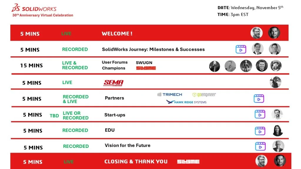 Join us for the SOLIDWORKS 30th Anniversary Virtual Celebration on Wednesday, November 5th, at 3 PM EST. This milestone event brings together the global SOLIDWORKS community to honor three decades of advancing design and engineering, while also looking ahead to future possibilities.