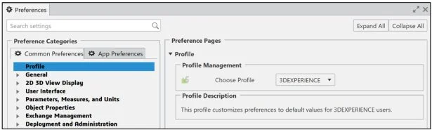 Select a Profile from the Profile Management drop-down menu (SOLIDWORKS).