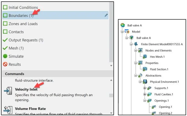 In this lesson, create two output requests. The first output request is for the inlet pressure and mass flow results. The second output request is for the outlet flow velocity and mass flow results. Use this information to confirm that the Simulation converged properly and to analyze the valve’s performance.