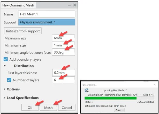 Click OK from the Hex-Dominant Mesh dialog box.