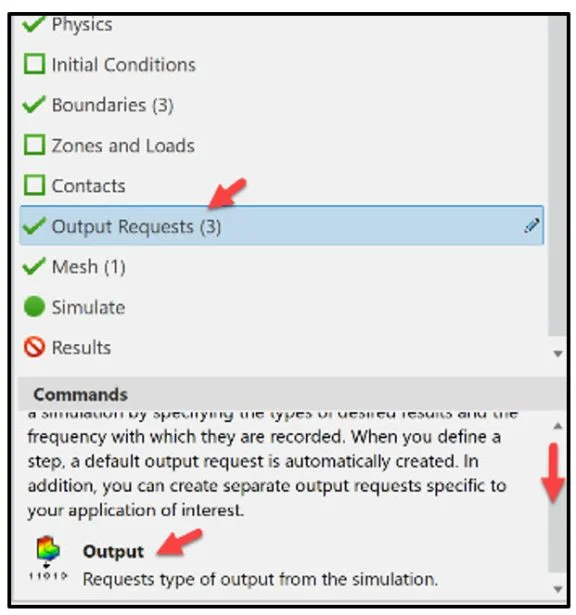 The Physics Results Explorer App automatically creates an output request for the model when your create a Simulation study. By modifying the output request, you can filter the volume of data produced during a Simulation. You can also create output requests to collect pertinent variable data for particular supports.
