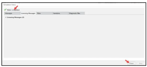 Click Close from the Simulation Status dialog box.